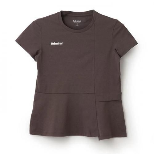左身頃側に段差をつけたアシンメトリーな裾デザインで、単色ながら個性的な印象のTシャツ。